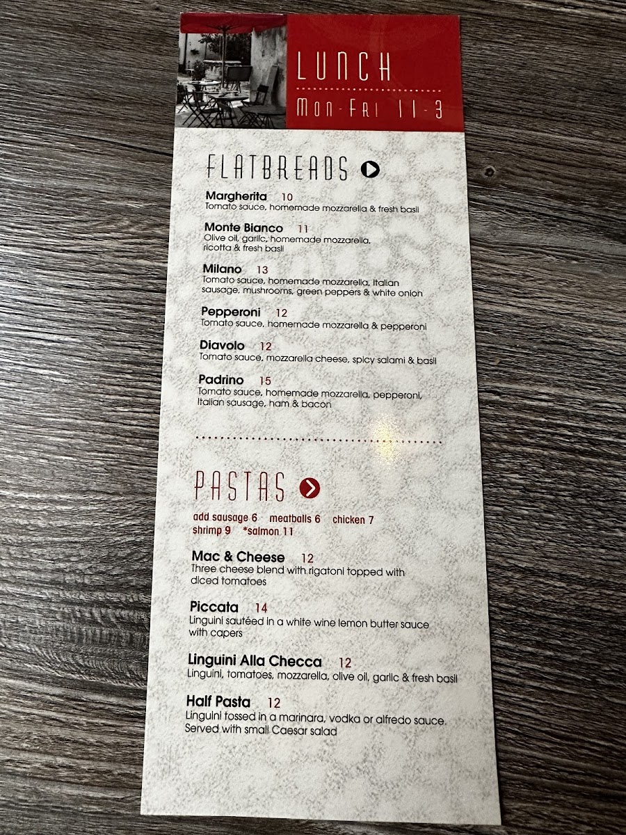 “ This is a nice place to take a date. I stopped by on a whim after another restaurant didn't work out due to tough parking situation. The parking was somewhat tough here as well but better overall. I arrived shortly after lunch, around 1pm mark on Friday (5/2/2025). They have many seating options available, tall chairs, booths, tables, half booth-half tables, varied layout. There is also a very large covered-ish outdoor seating area. The decor is sophisticated modern with a dimly lit atmosphere, very cozy and comfortable feeling. This is the type of place where you'd want to reserve a table for the evening if you plan on going out to eat during a popular hour. They have an excellent wine collection, I'd say moderate to some high end options available. I didn't have any alcohol, just the Ravioli (22) and a Coca-Cola (3.75). The ravioli was perfect, I'm not sure on the sauce but it was delicious, the cheese was also perfect - tasted great. Great portion size, great price for the quality of food presented and consumed. I'm usually the least dressed down patron wherever I go, most people here were dressed a minimum of business casual to casual fine dining level. It was laid back but higher class. On an evening in this place, some might use the words, magical, special, romantic, to describe what they're feeling. That's what I imagine anyways. Good vibes all around, would recommend. ”